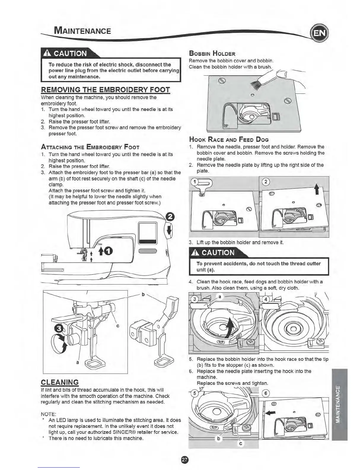 Singer EM200 - Maintenance; Maintenance Safety and Preparation; Cleaning the Machine