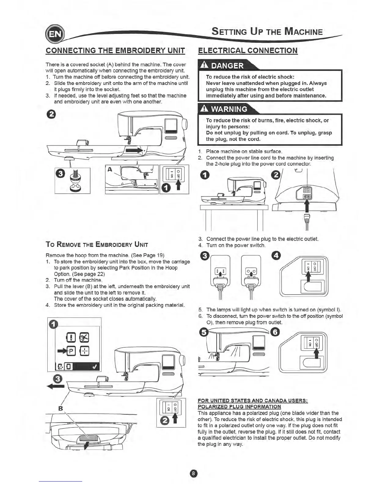 Singer EM200 - Connecting the Embroidery Unit; Electrical Connection