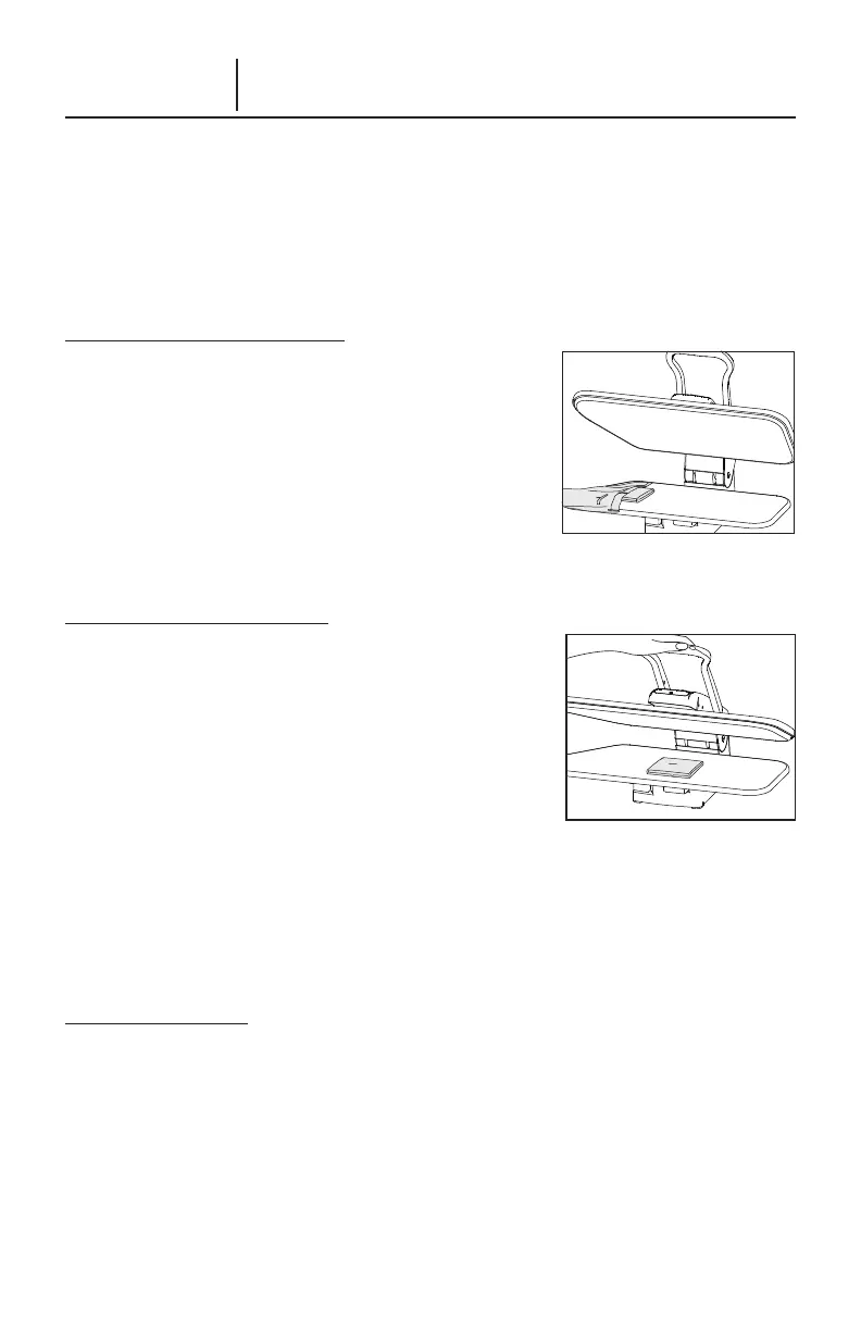 • Para prensar grandes pedaços de tecido, coloque a peça inteira atrás da tábua de passar.