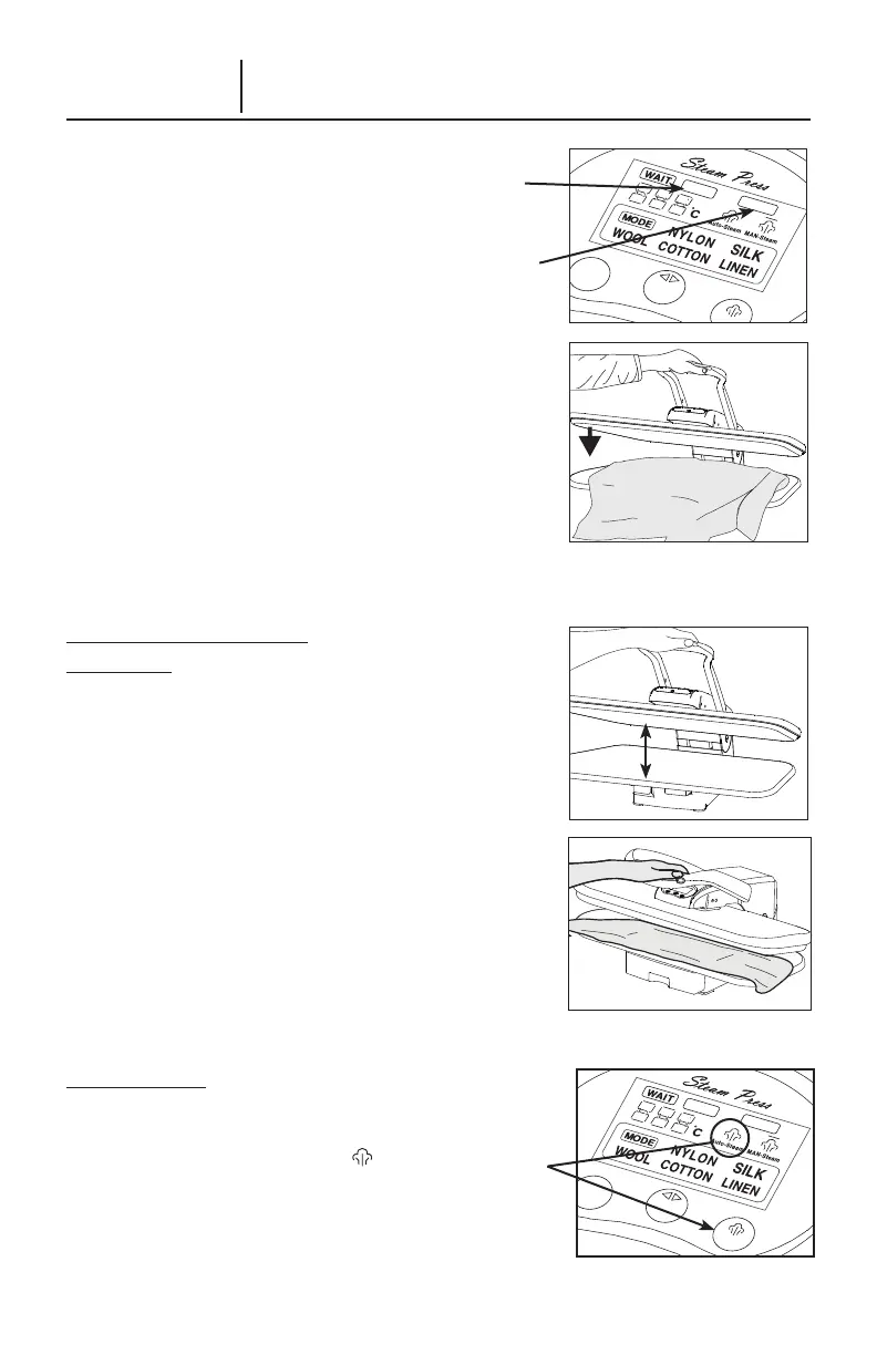 3. Abbassare la piastra di stiro sul tessuto per 8-10 secondi,