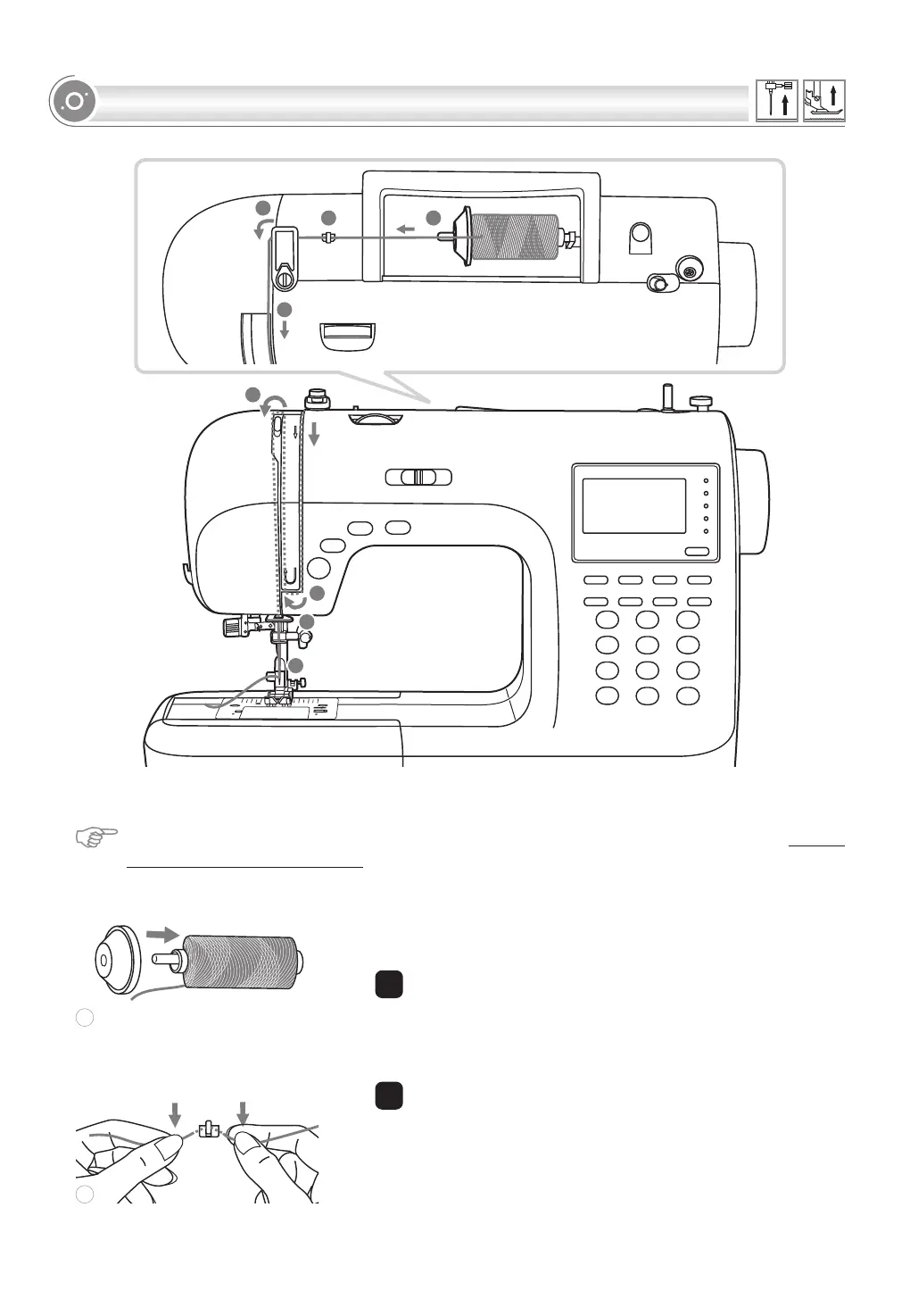 1 Lift up the spool pin. Place the spool of thread on the spool