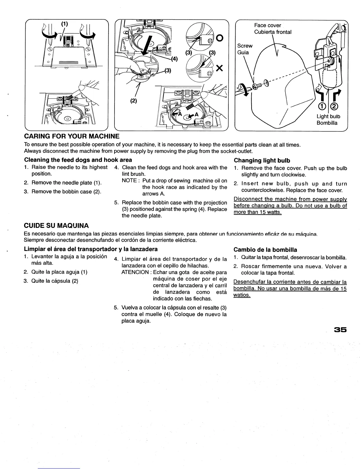 Singer Feather Weight II - Caring for Your Machine; Cleaning the Feed Dogs and Hook Area