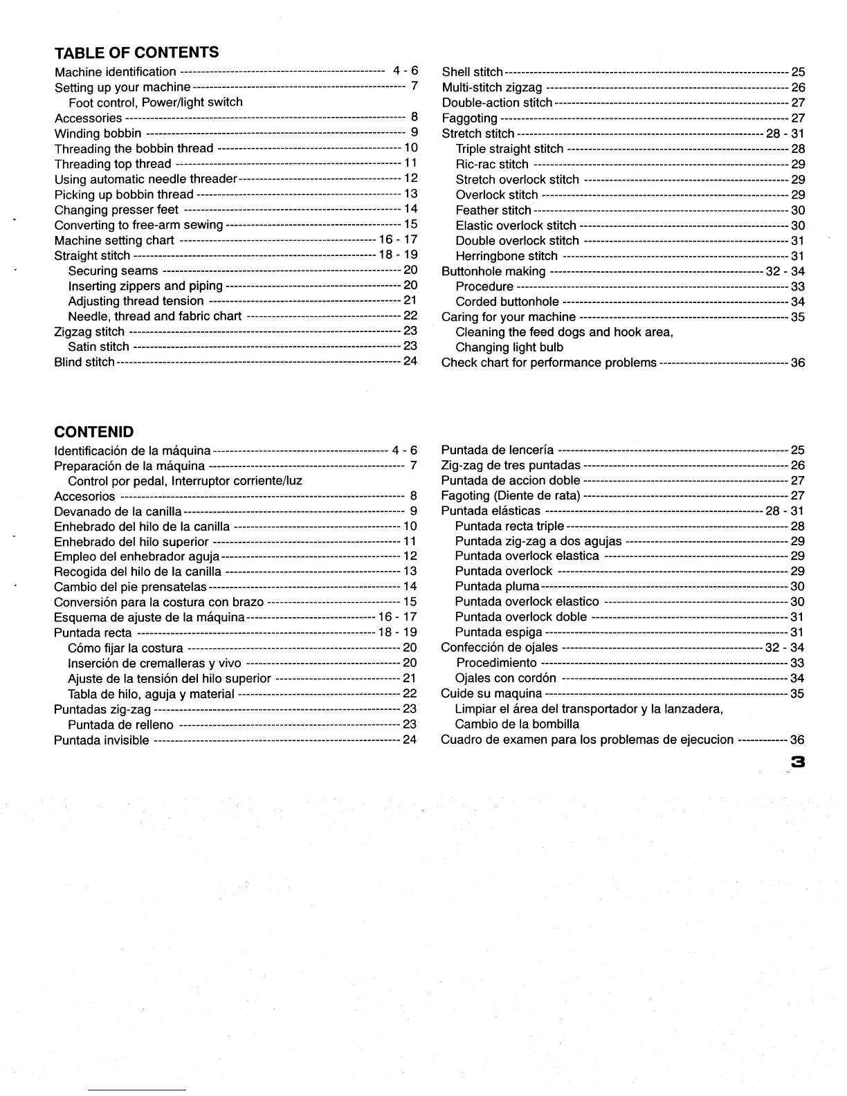 Singer Feather Weight II - Table of Contents