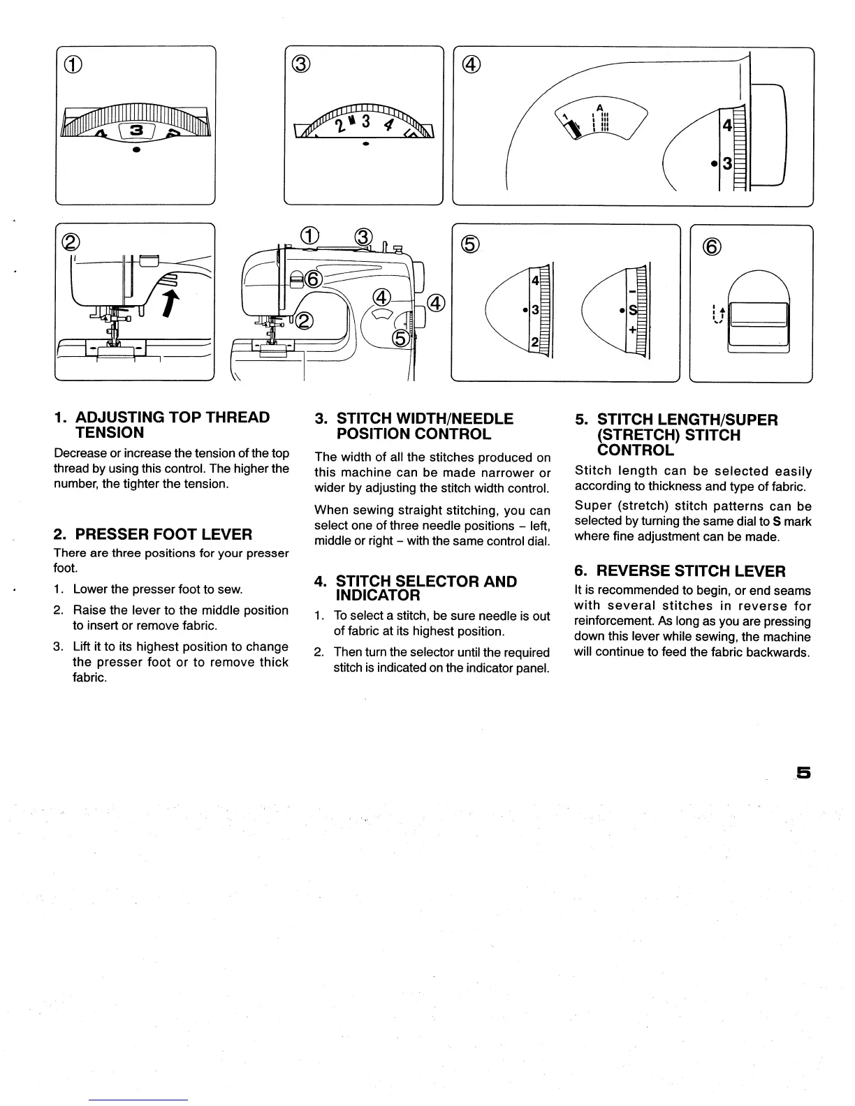Singer Feather Weight II - Machine Controls; Adjusting Top Thread Tension; Stitch Width;Needle Position Control; Stitch Selector and Indicator