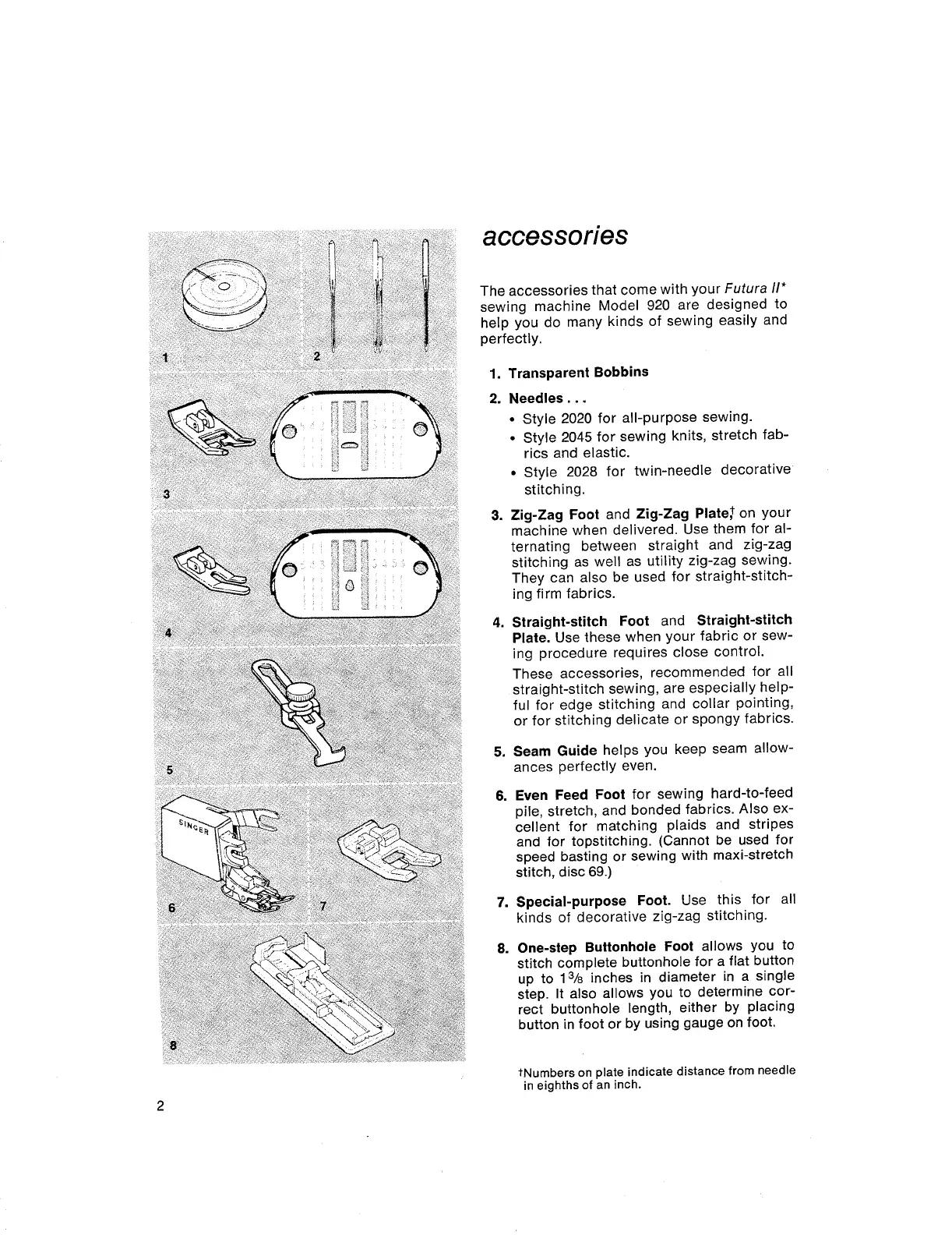 Singer Futurf II 920 - Sewing Machine Accessories; Getting Ready to Sew