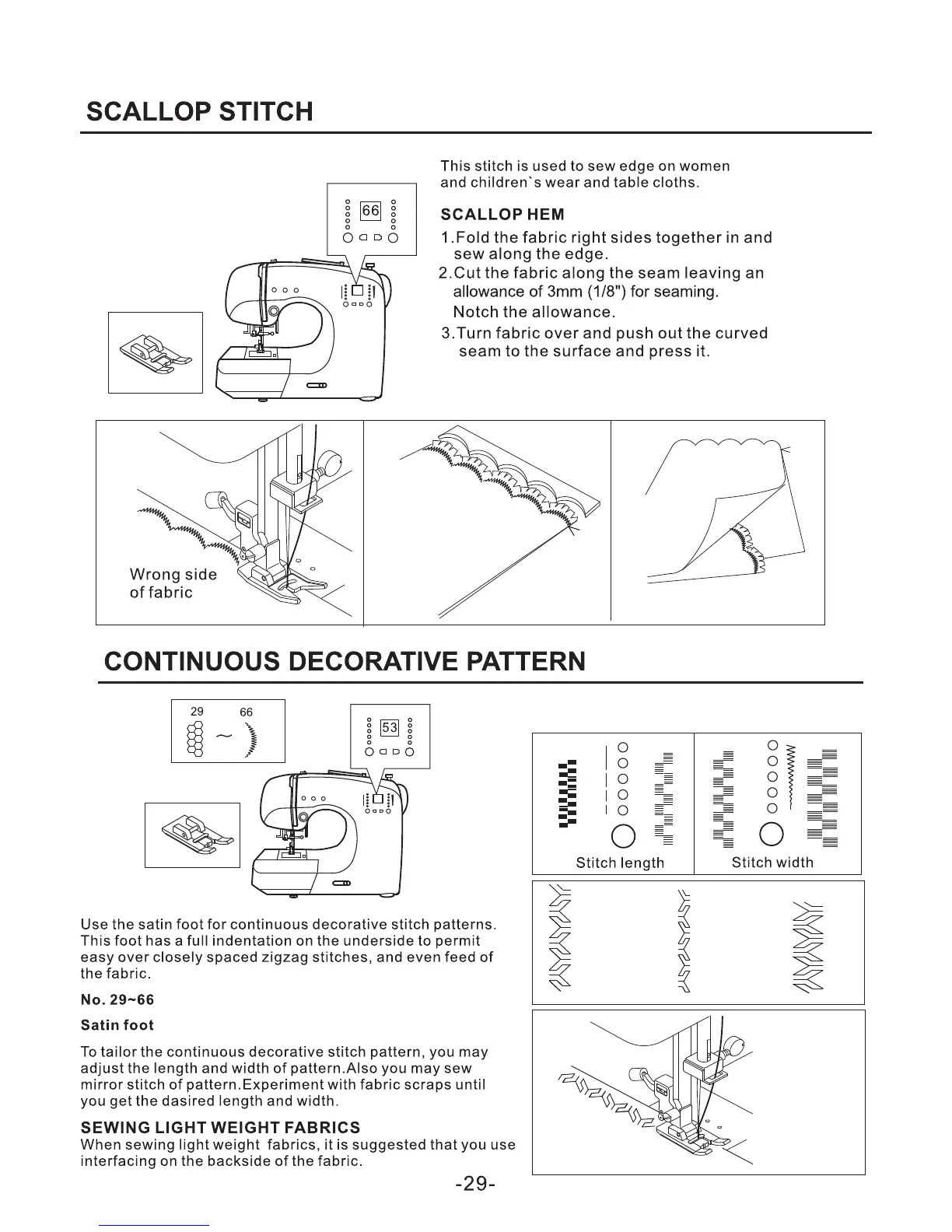Singer FW75 - Scallop Stitch; Continuous Decorative Pattern; Scallop Hem