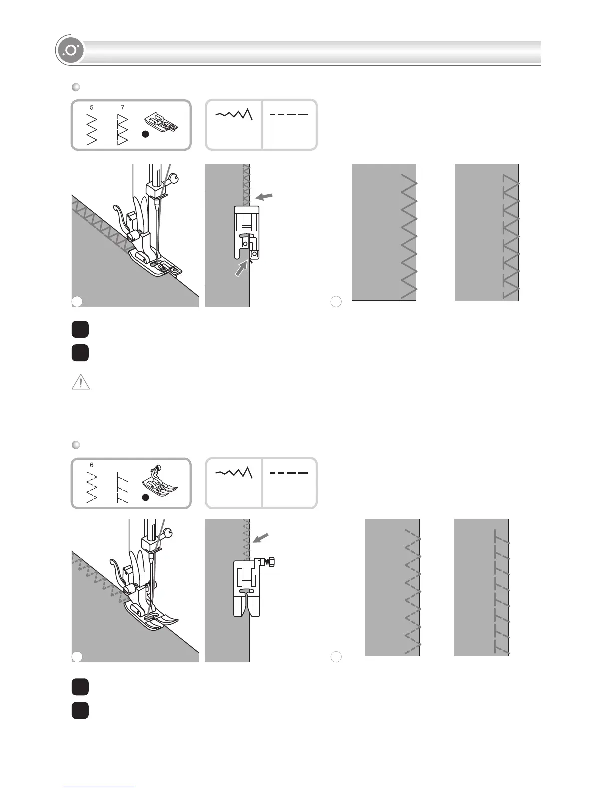 Attention: The overcasting foot should be used to sew with Direct Patterns 5 and 7 only. Do not