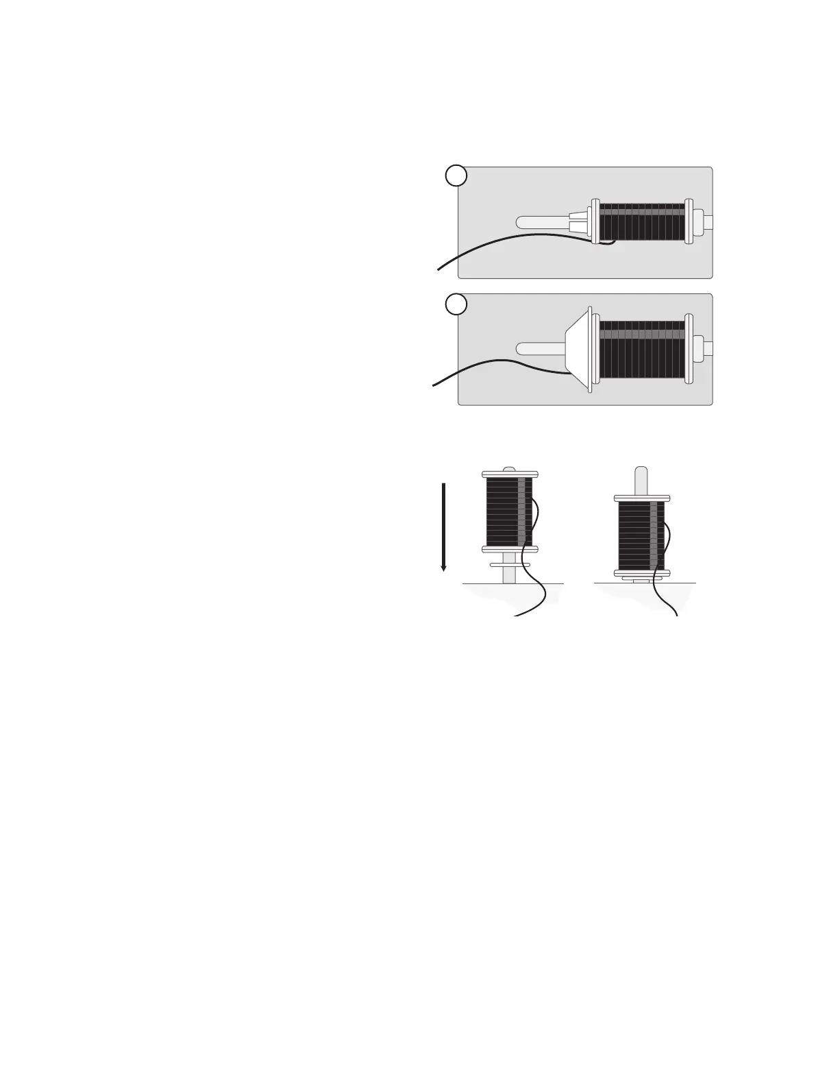 (the thread spool rotates). Use the horizontal position for normal threads and the vertical position for large spools or specialty