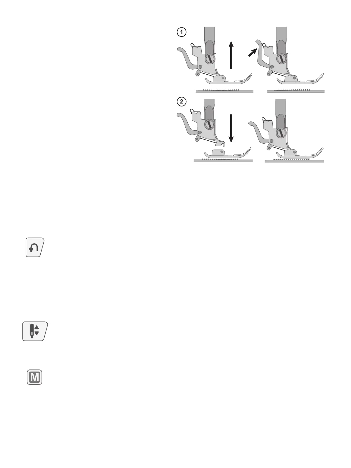 Press and hold the Reverse button to sew in reverse. Release it to resume sewing forward. The machine sews in
