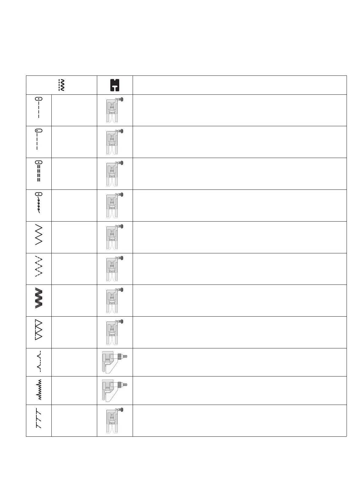 The stitches described in the below chart are utility stitches, used mainly for utility sewing.