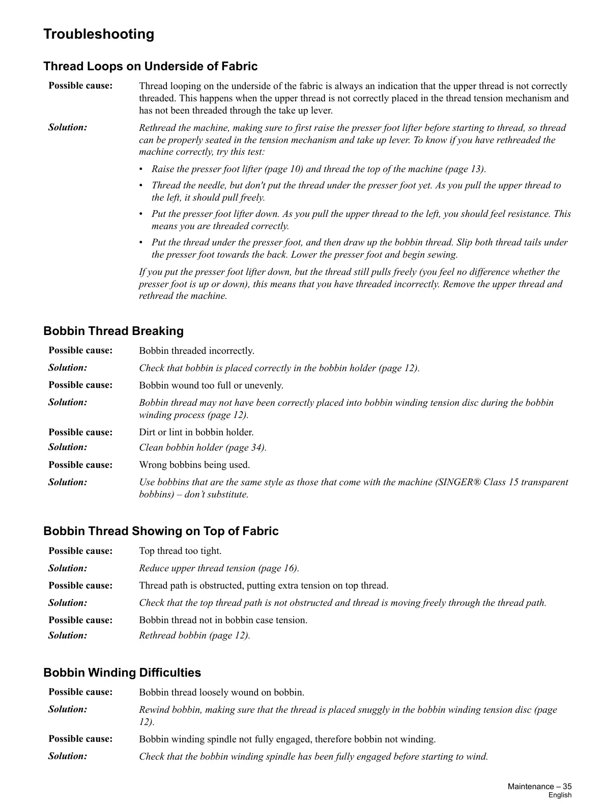 Use bobbins that are the same style as those that come with the machine (SINGER® Class 15 transparent