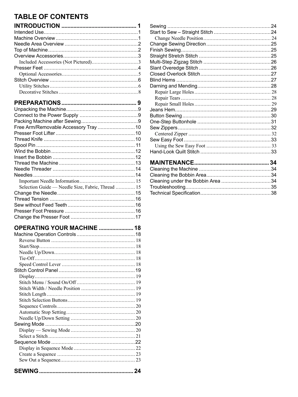 Sew Easy Foot ..........................................................33