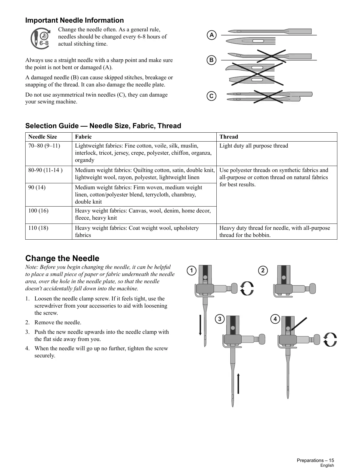 80-90 (11-14 ) Medium weight fabrics: Quilting cotton, satin, double knit,
