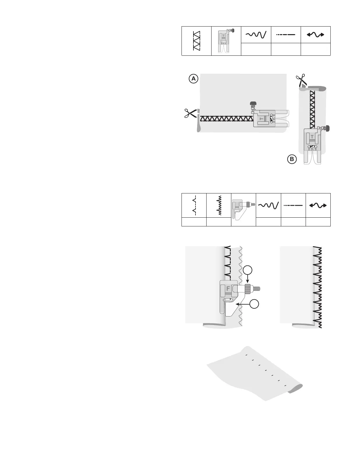 Use this stitch to hem stretch fabrics (A) and for belt loops (B).