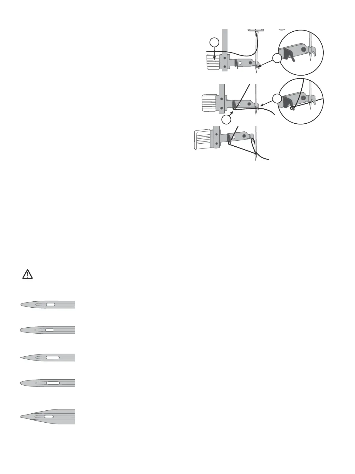 la aguja más grande. Si el ojo de la aguja es demasiado pequeño para el hilo, el enhebrador podría no funcionar correcta-