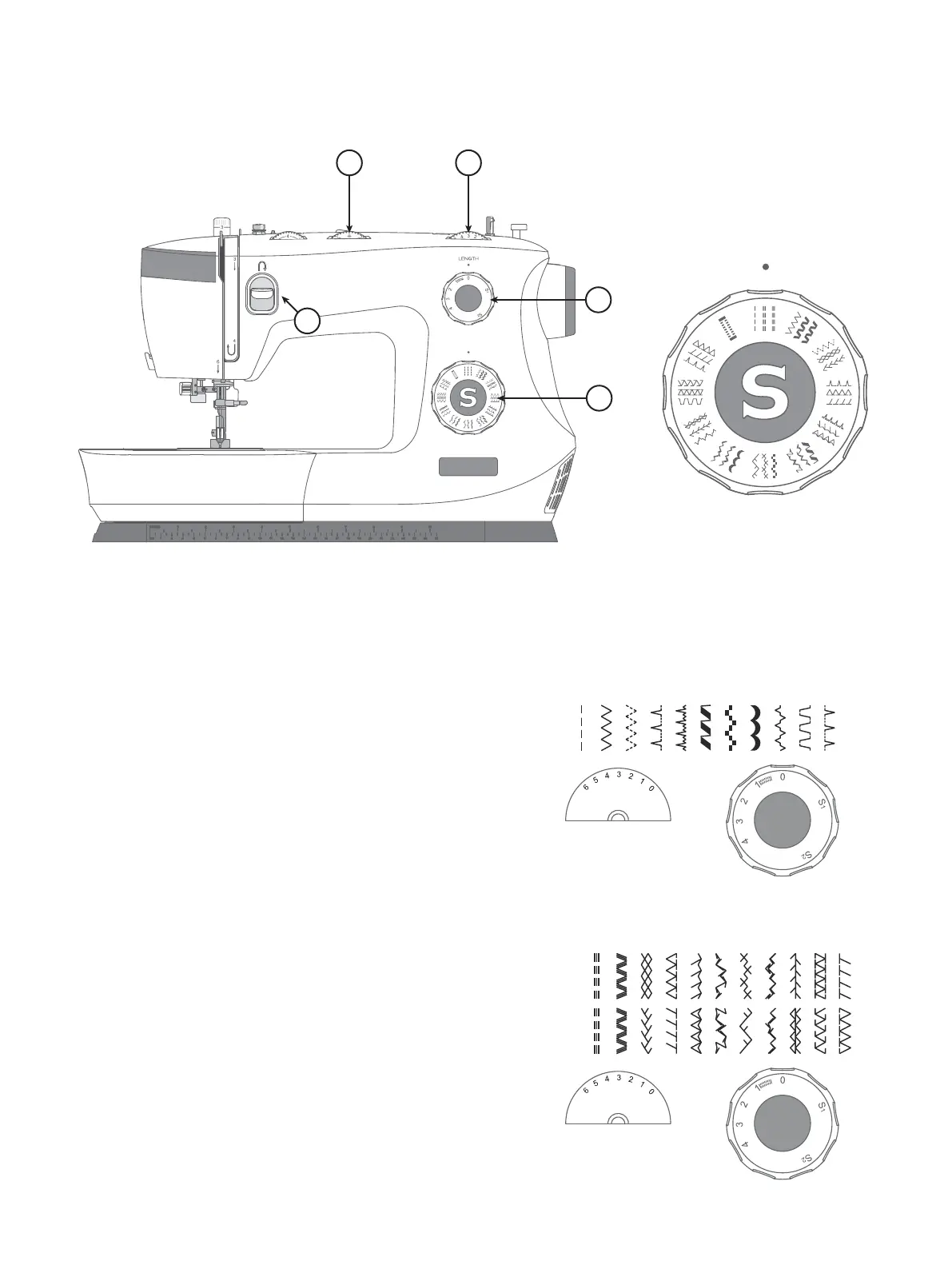 El dial de selección de puntada se utiliza para seleccionar la puntada que desea coser. El dial se puede girar a la izquierda o a la dere-
