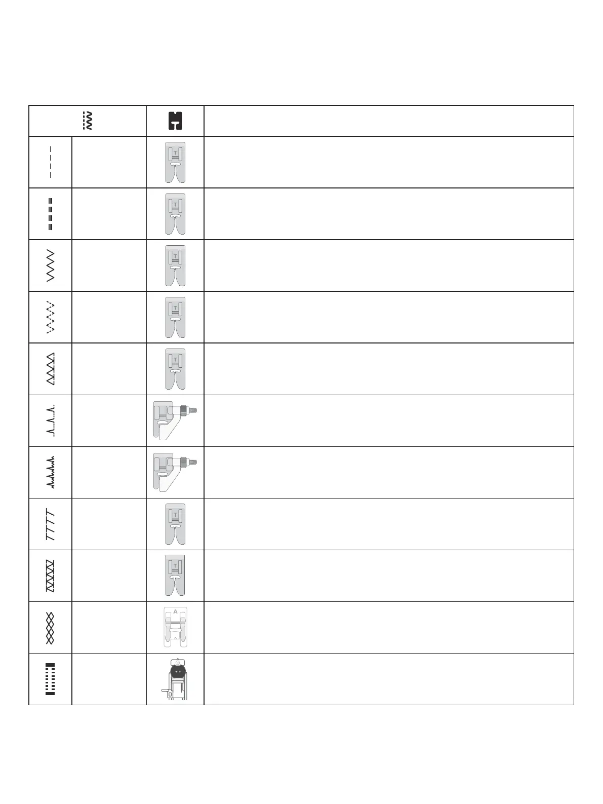 The stitches described in the below chart are utility stitches, used mainly for utility sewing. When sewing, use a thread tension