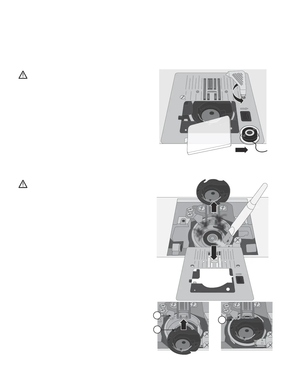 Retire el prensatelas. Deslice la cubierta de la bobina y retira la