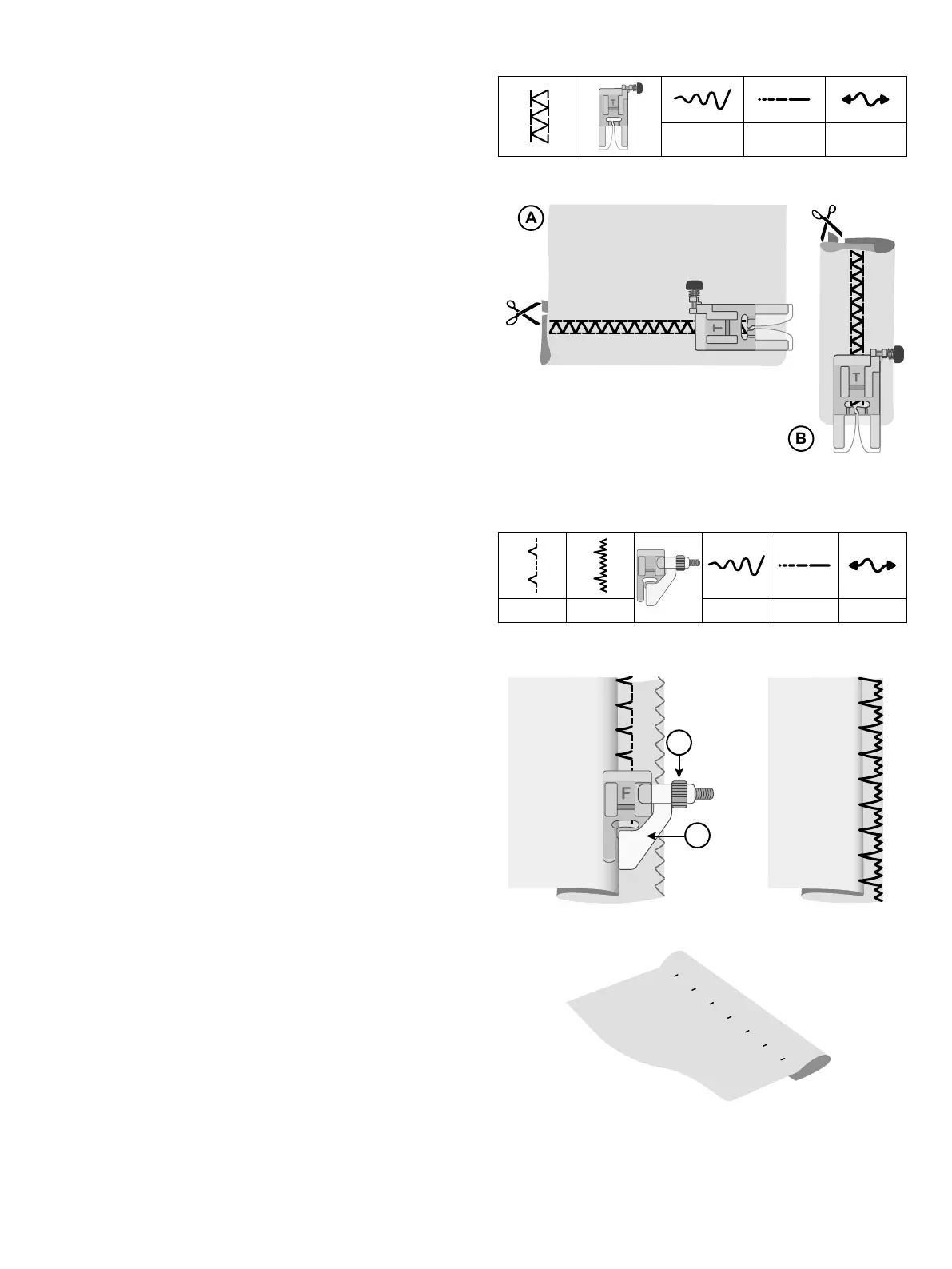 Utilisez ce point pour ourler les tissus extensibles (A) et pour
