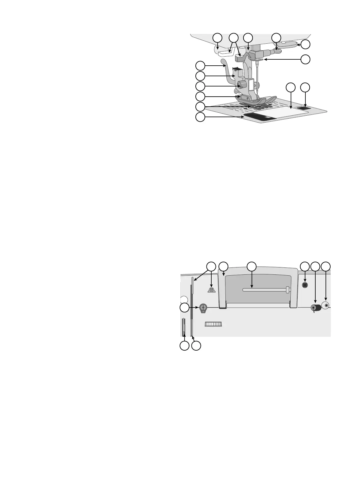 11. Guías de hilo — ayuda a mantener el flujo de hilo al coser.