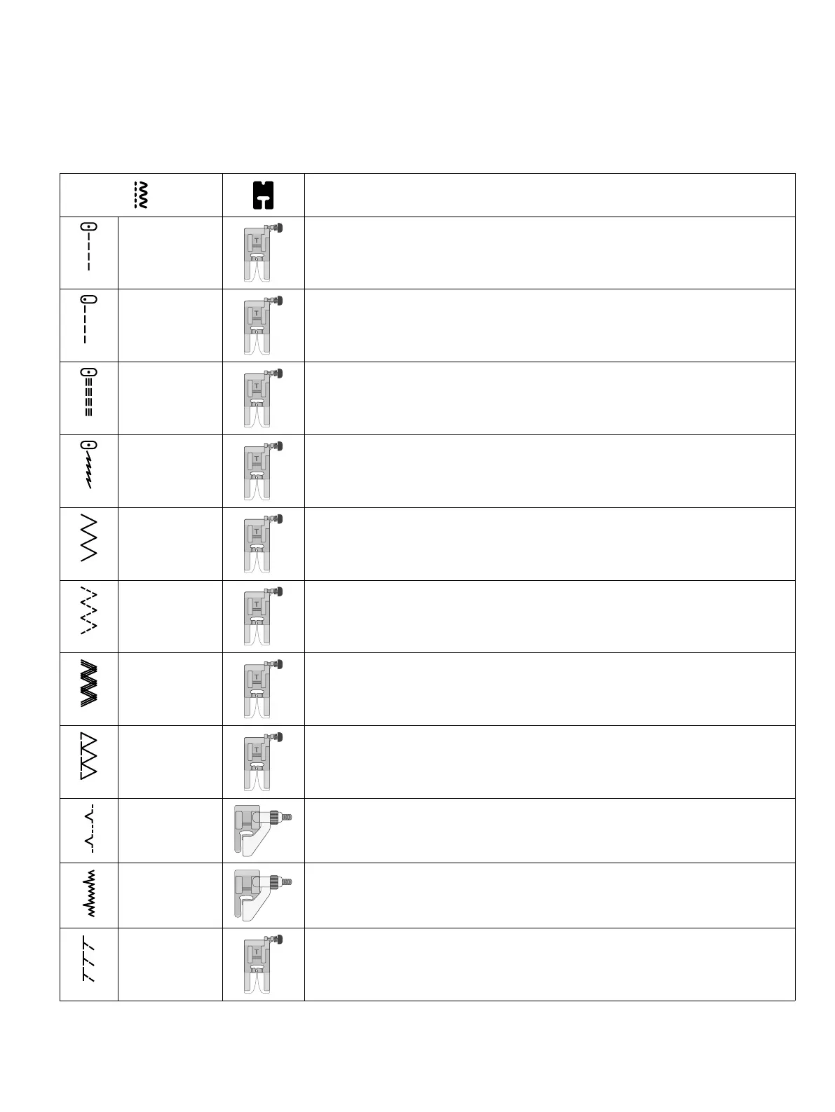 The stitches described in the below chart are utility stitches, used mainly for utility sewing.