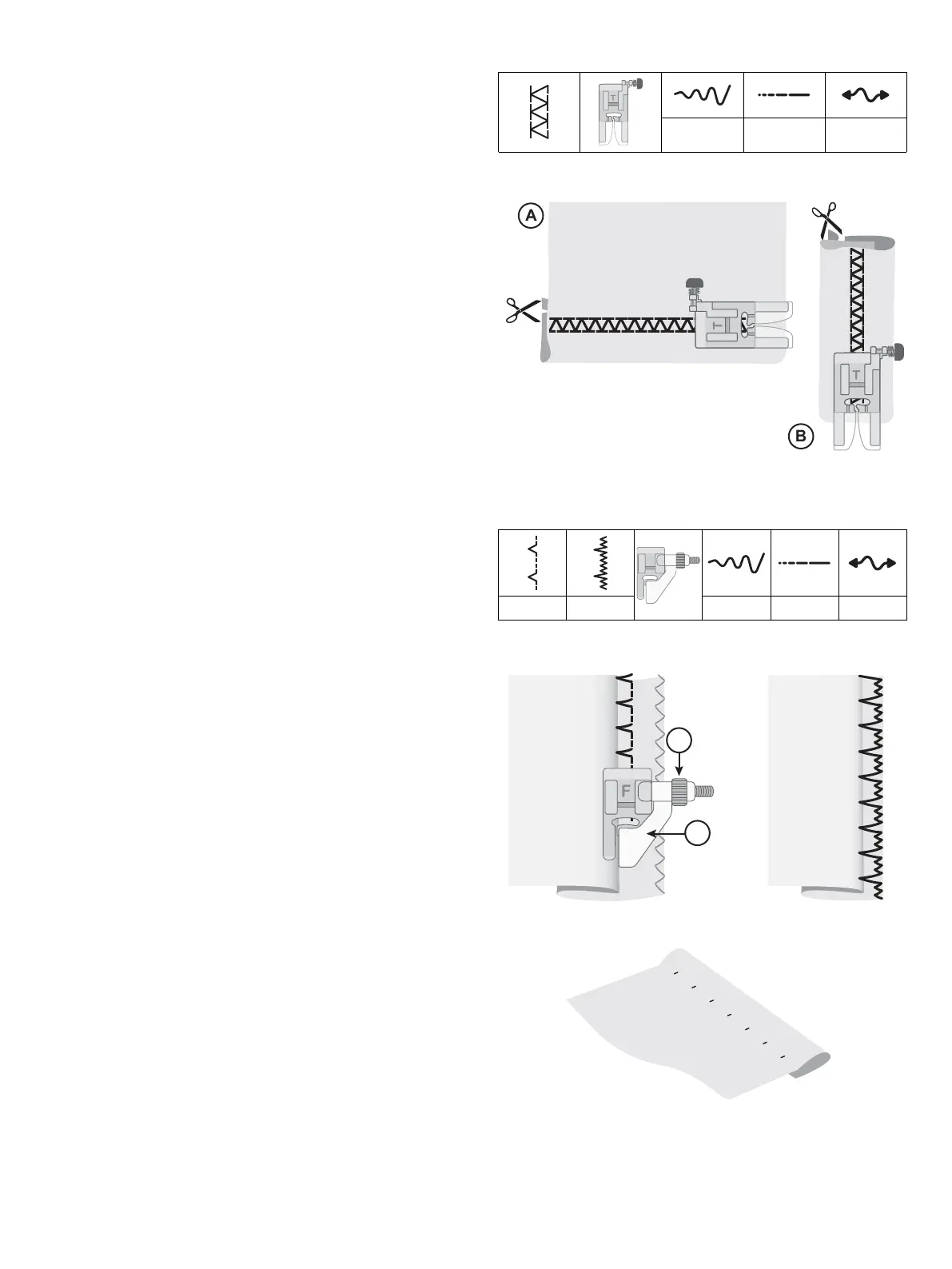 Use this stitch to hem stretch fabrics (A) and for belt loops (B).