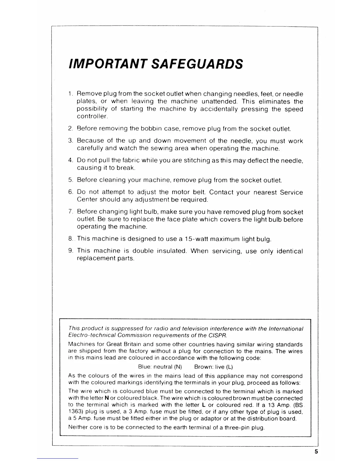 Singer Imperial 7005 - IMPORTANT SAFEGUARDS