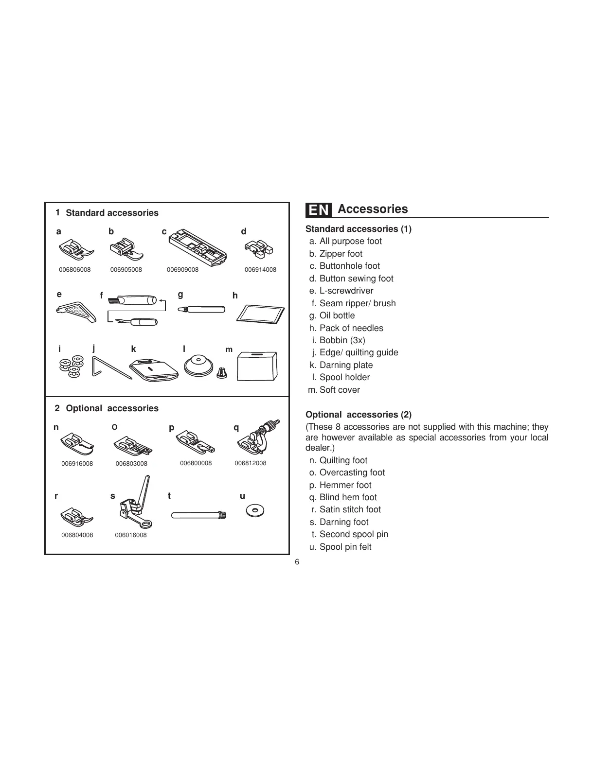 (These 8 accessories are not supplied with this machine; they