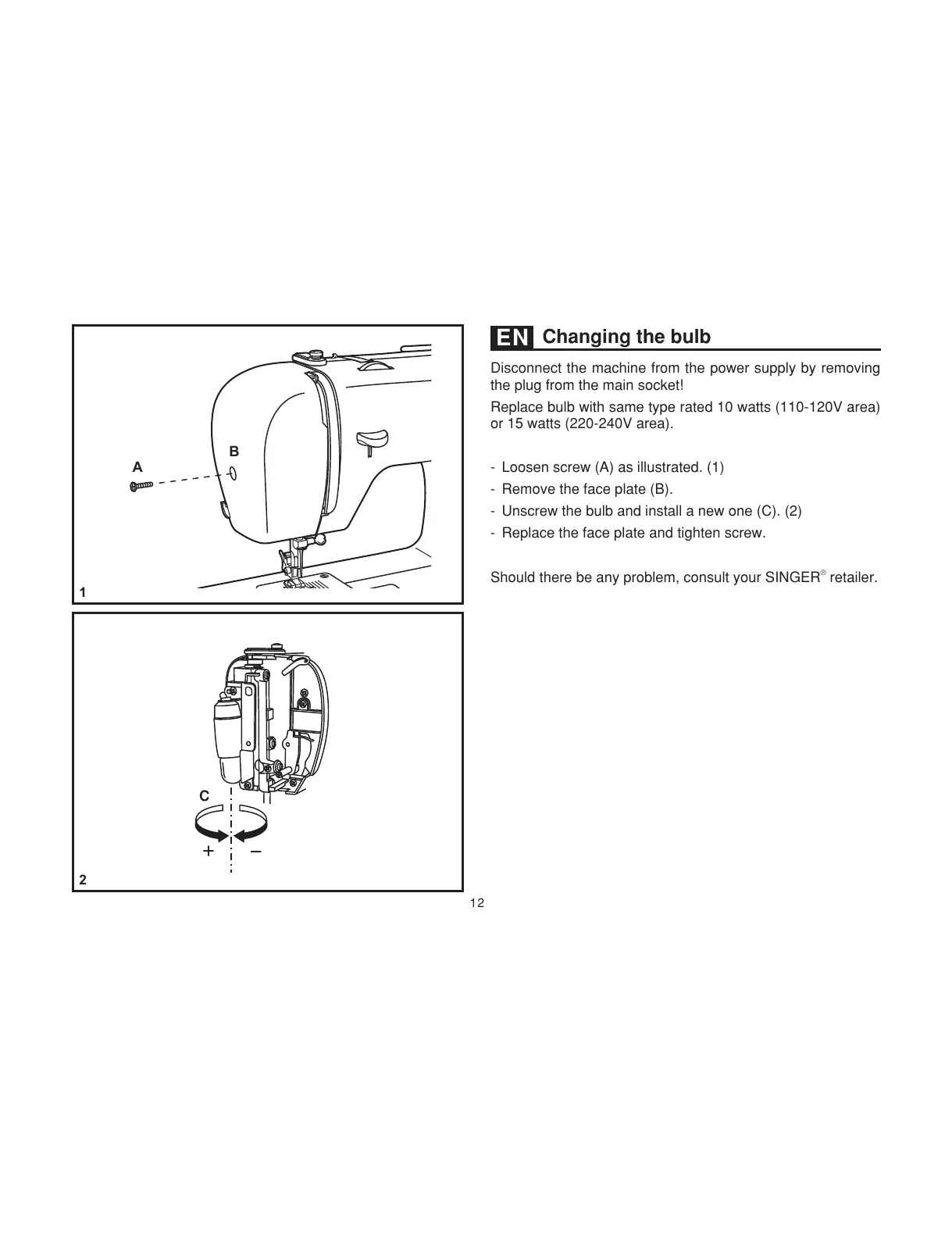 Should there be any problem, consult your SINGER retailer.