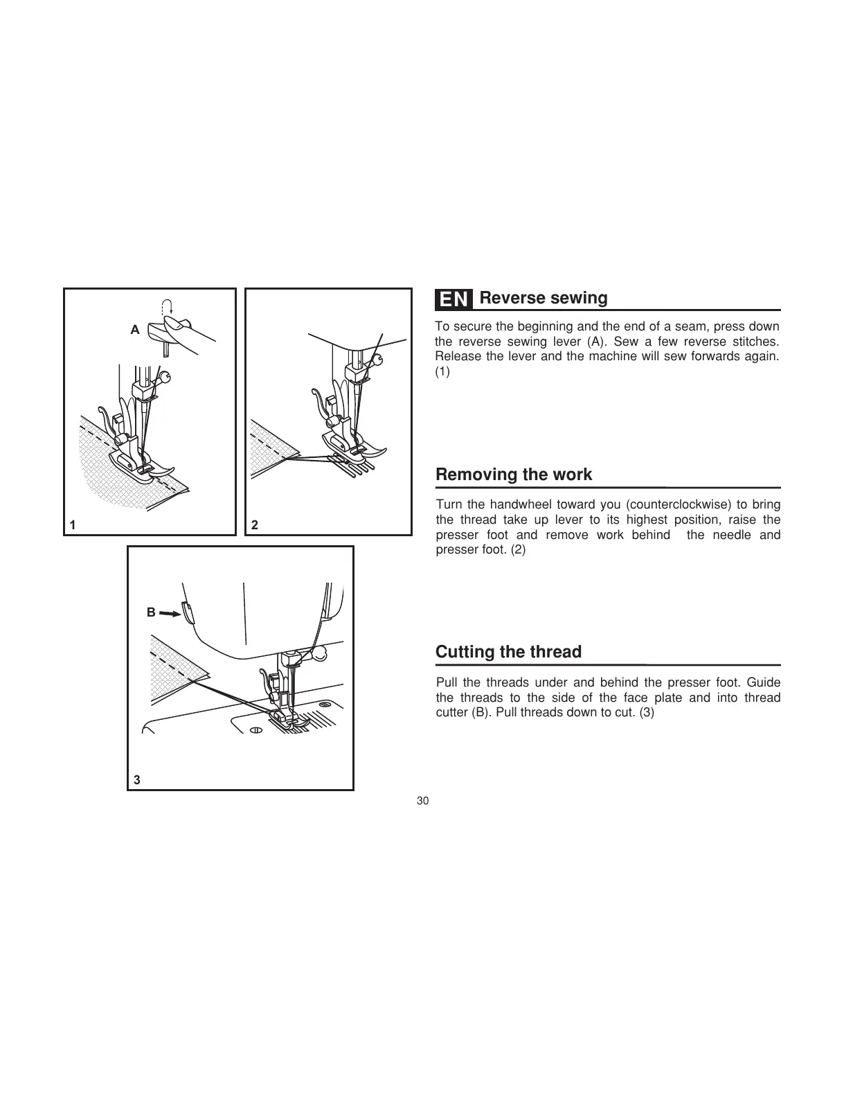 the reverse sewing lever (A). Sew a few reverse stitches.