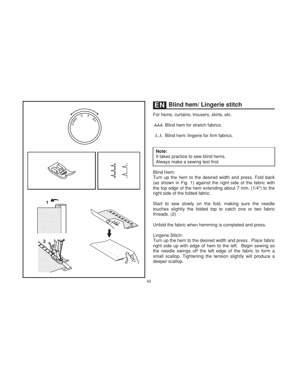 the top edge of the hem extending about 7 mm. (1/4") to the