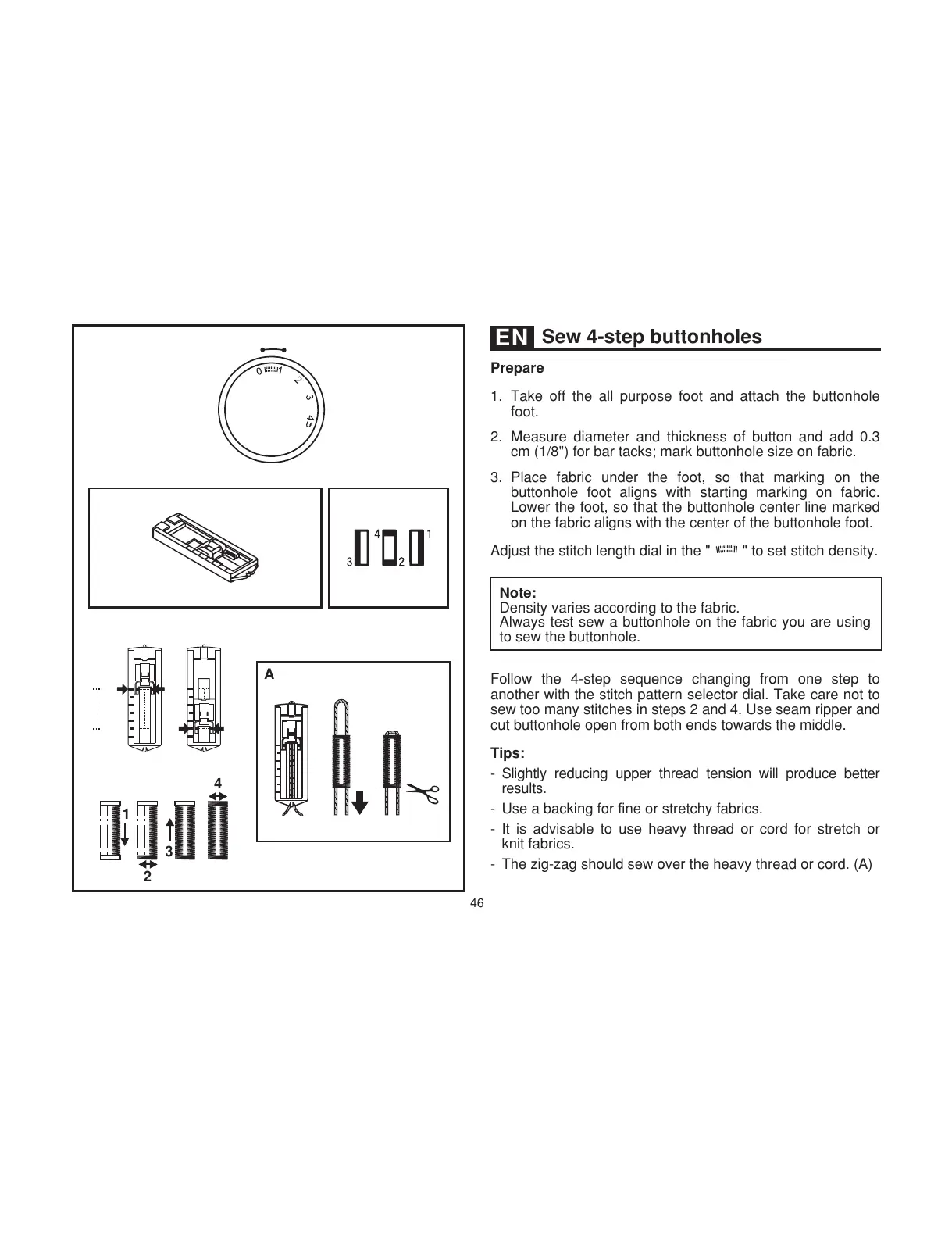 cm (1/8") for bar tacks; mark buttonhole size on fabric.