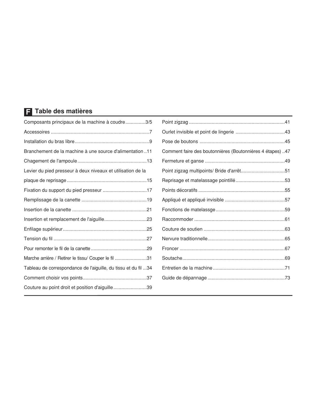 Point zigzag multipoints/ Bride d'arrêt.................................51