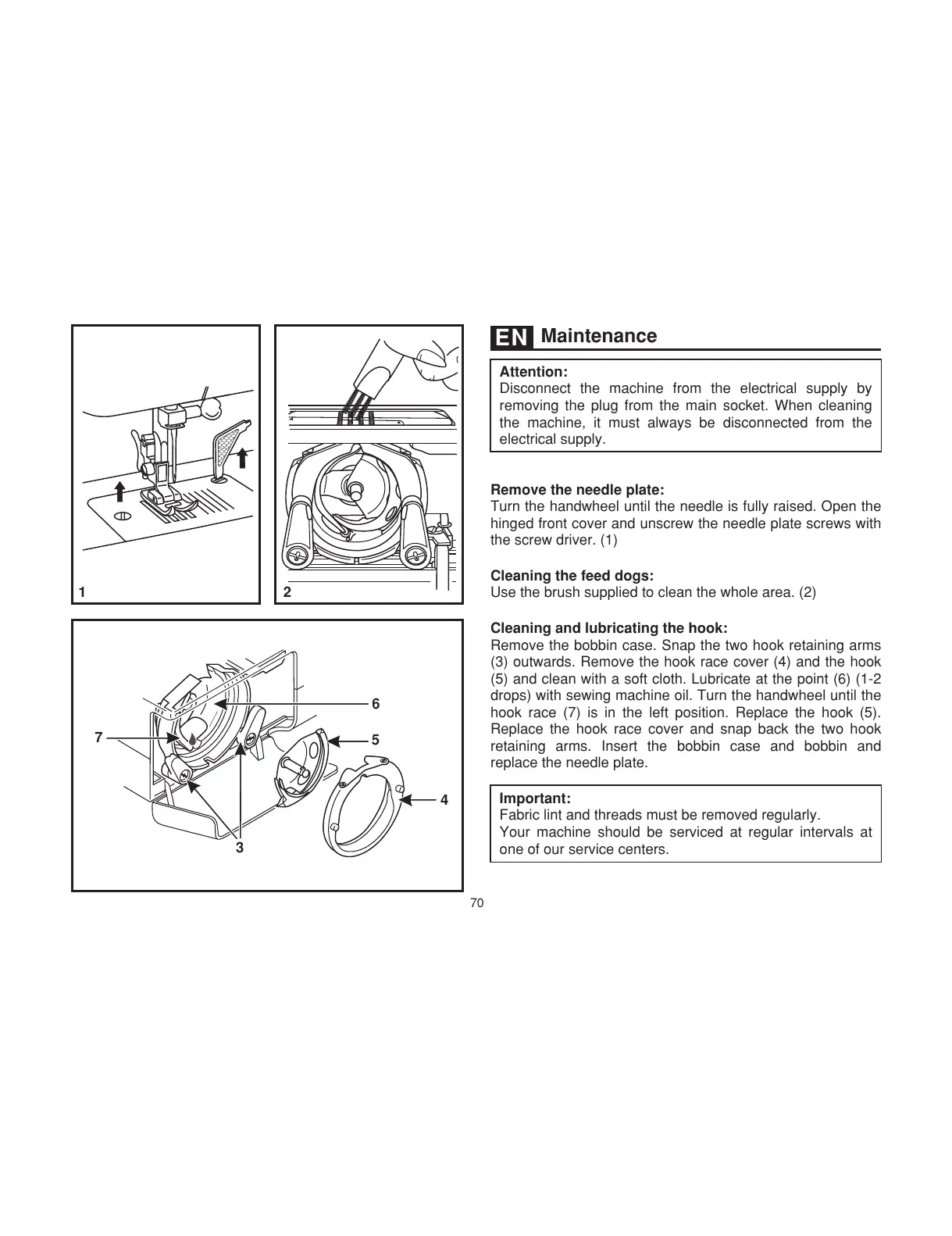 drops) with sewing machine oil. Turn the handwheel until the