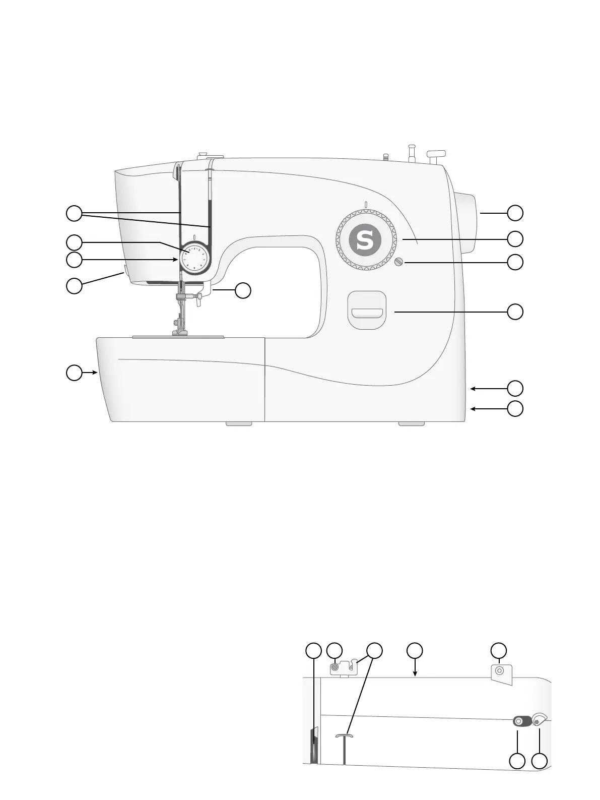 8. Stitch Selector Dial — is used to select stitch patterns and