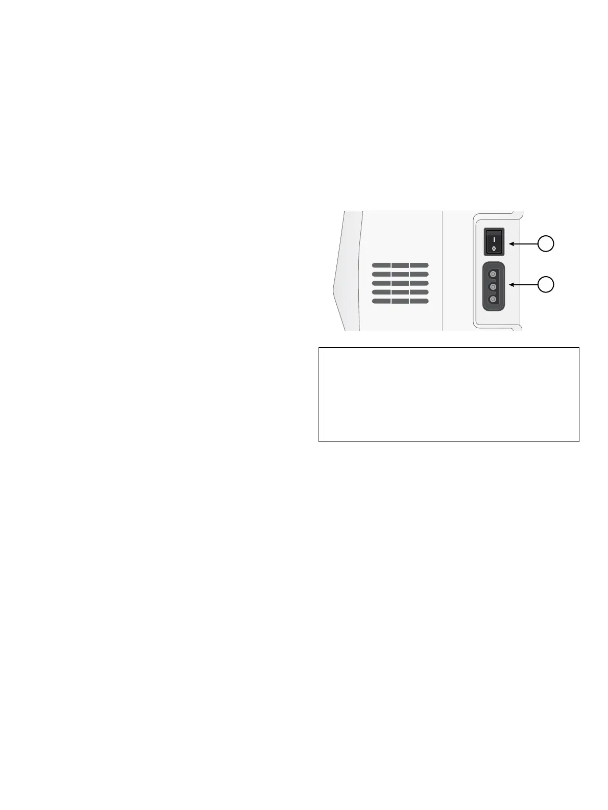 2. Press the ON/OFF switch (B) to "I" to turn on power and
