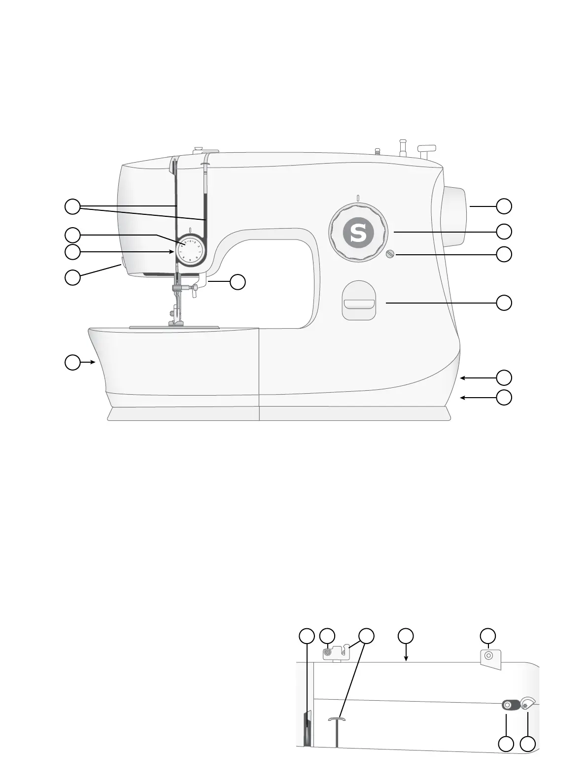 8. Stitch Selector Dial — is used to select stitch patterns and