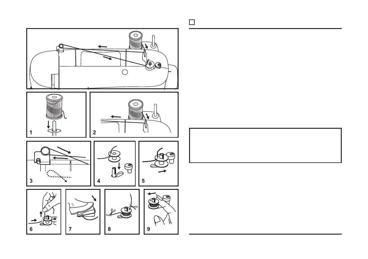 - Thread bobbin as illustrated and place on spindle. (4)