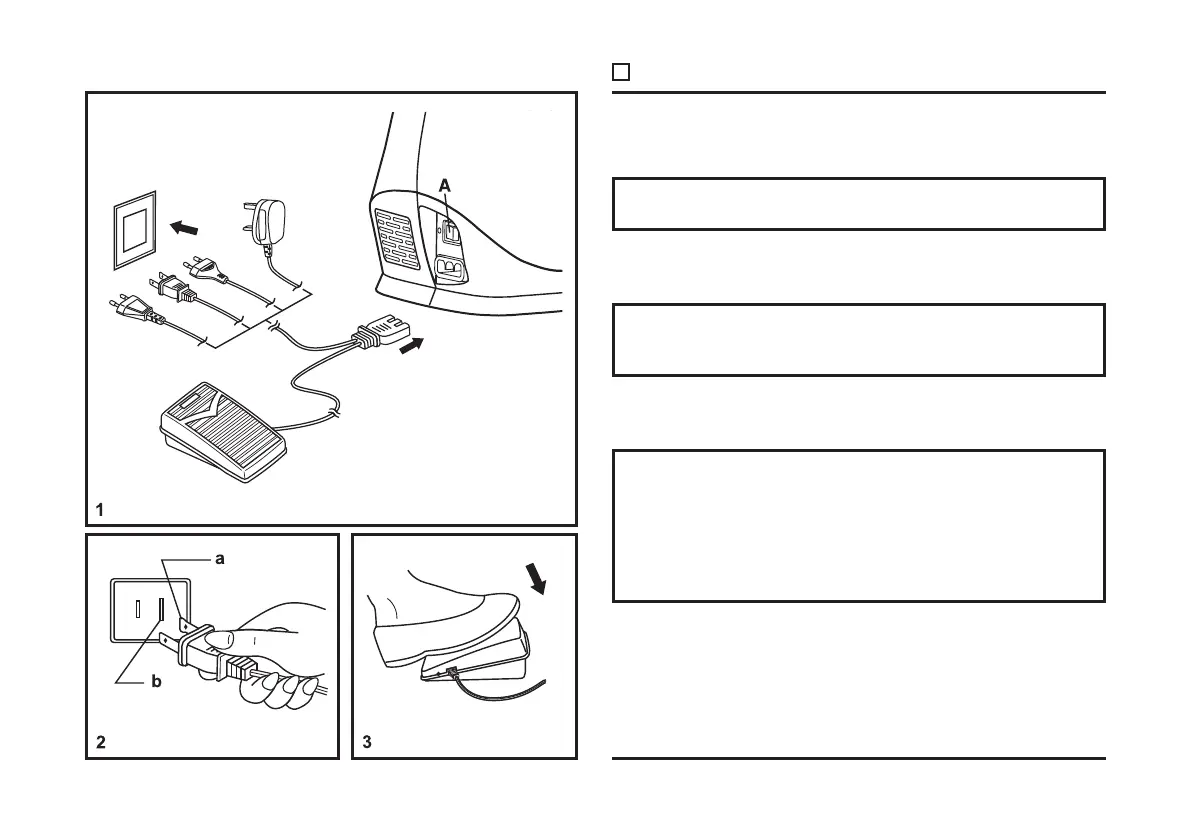 The foot control pedal regulates the sewing speed. (3)