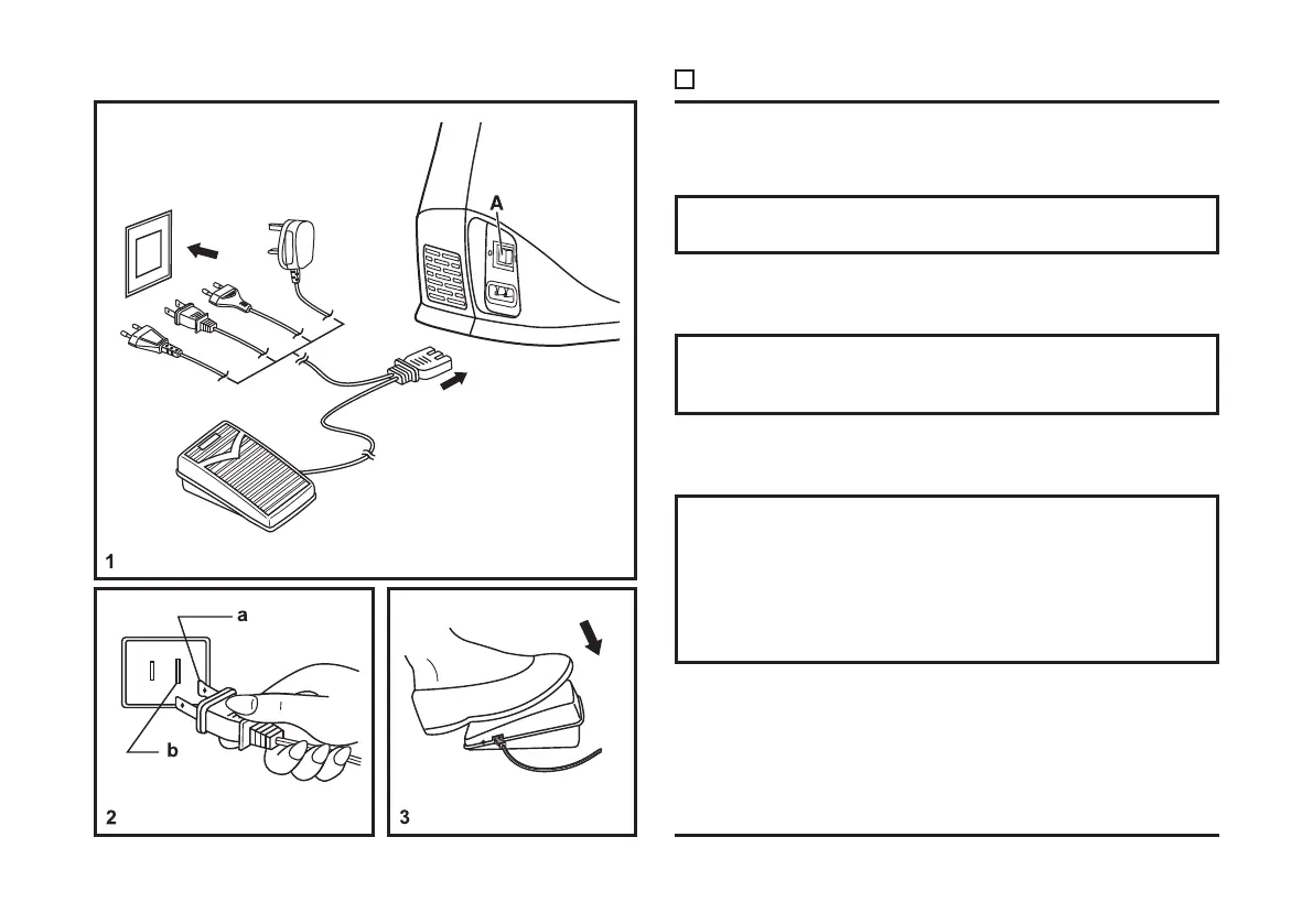 The foot control pedal regulates the sewing speed. (3)