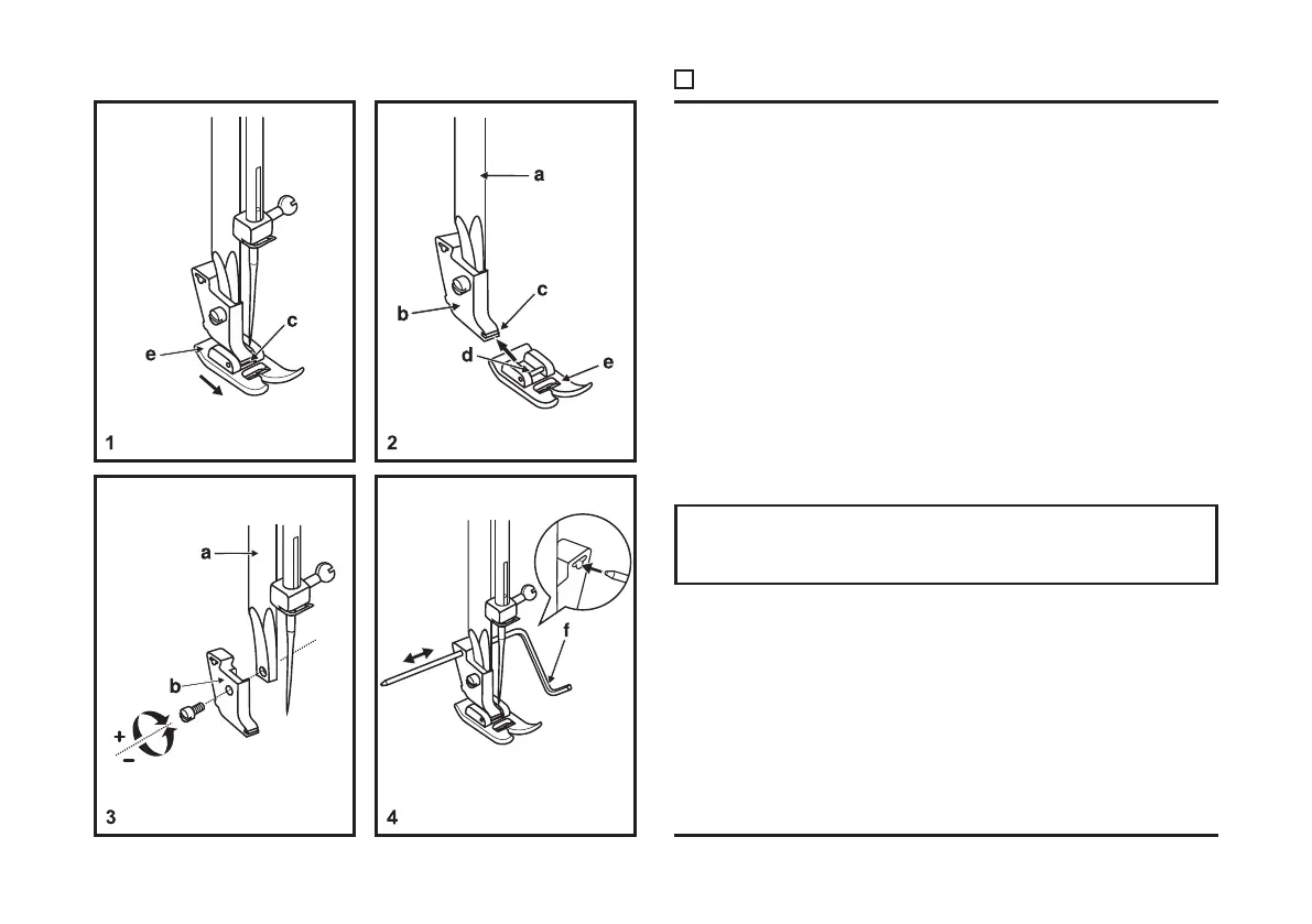 Remove and attach the presser foot shank (b) as illustrated. (3)