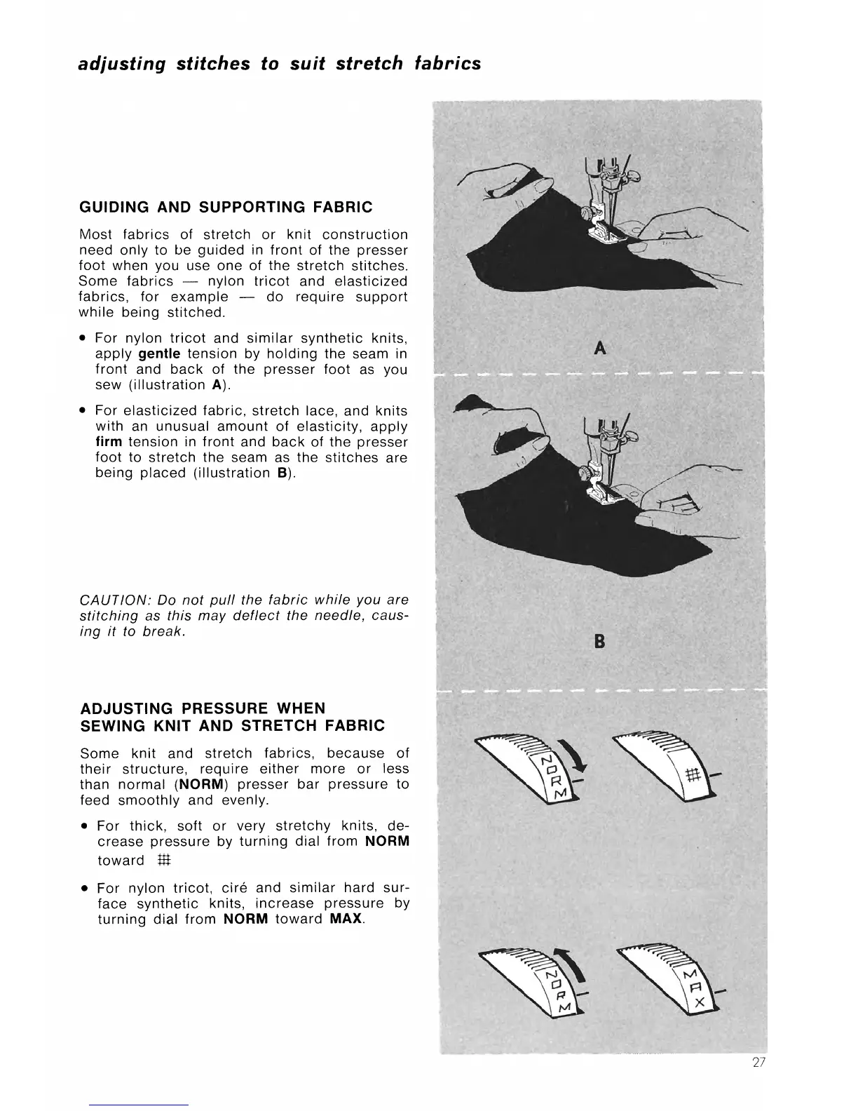 Singer Magic 22 - Adjusting Stitches for Stretch Fabrics; Guiding and Supporting Stretch Fabric; Adjusting Pressure for Knit and Stretch Fabric