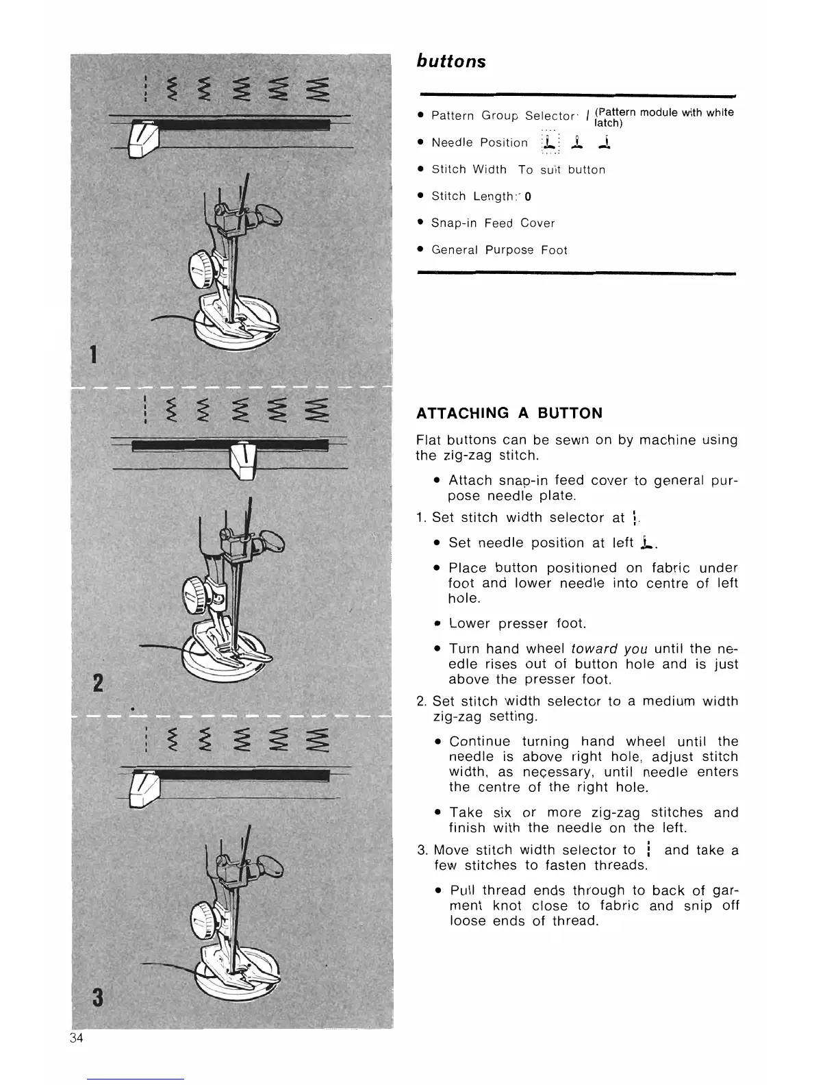 Singer Magic 22 - Attaching Buttons; Attaching a Button with Zig-Zag Stitch