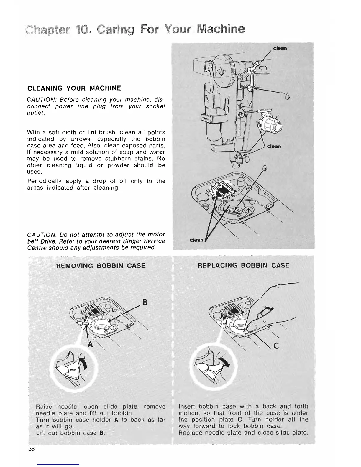 Singer Magic 22 - Caring For Your Sewing Machine; Cleaning Your Sewing Machine; Removing and Replacing Bobbin Case
