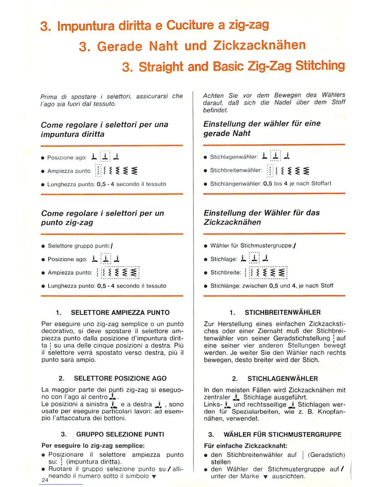 Singer Magic 8134; Magic 8234 - Straight and Basic Zig-Zag Stitching; Setting Selectors for Straight Stitching; Setting Selectors for Zig-Zag Stitching
