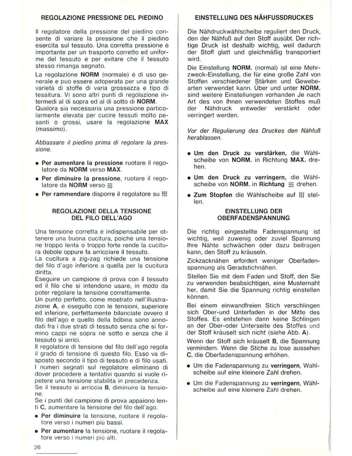 Singer Magic 8134; Magic 8234 - Regulating Presser Foot Pressure; Adjusting Needle Thread Tension
