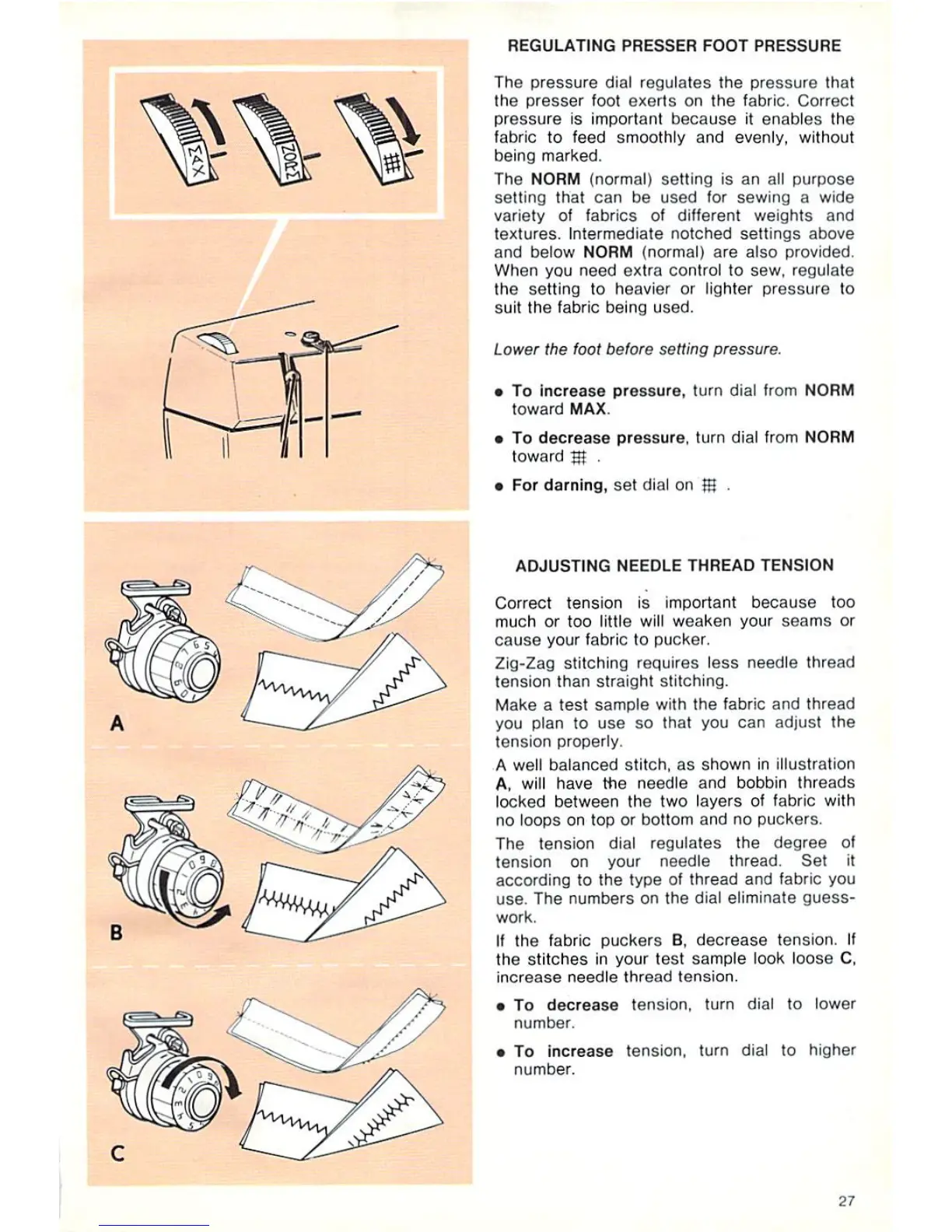 Singer Magic 8134; Magic 8234 - Regulating Presser Foot Pressure; Adjusting Needle Thread Tension