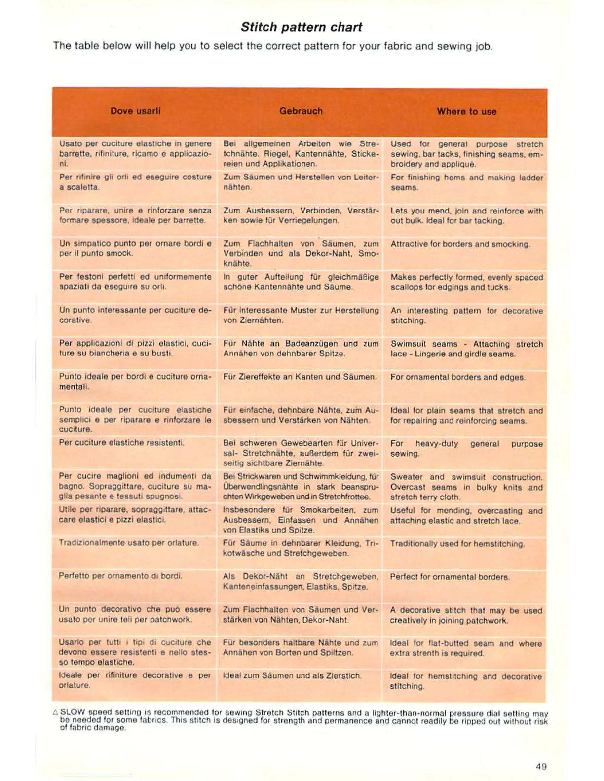 Singer Magic 8134; Magic 8234 - Stitch Pattern Chart