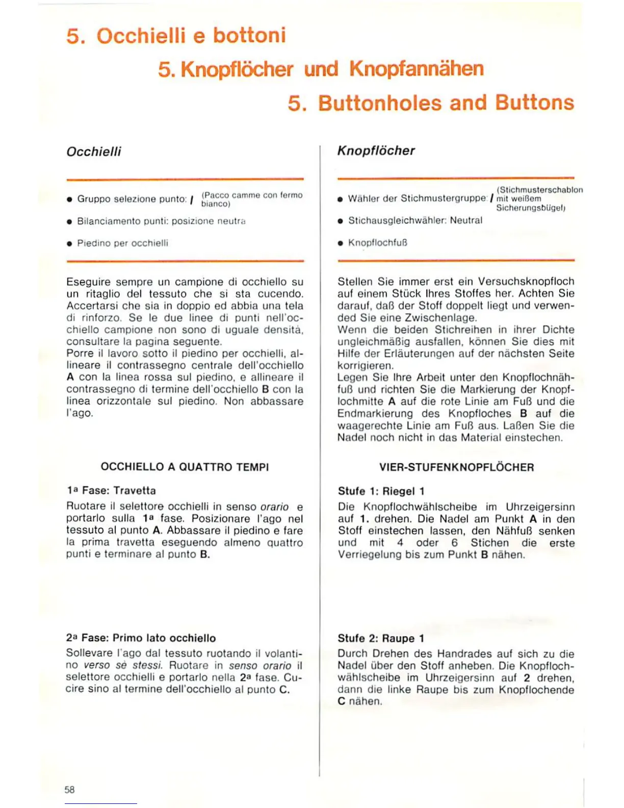 Singer Magic 8134; Magic 8234 - Buttonholes and Buttons; Occhielli; Knopflöcher; FOUR-STEP BUTTONHOLING