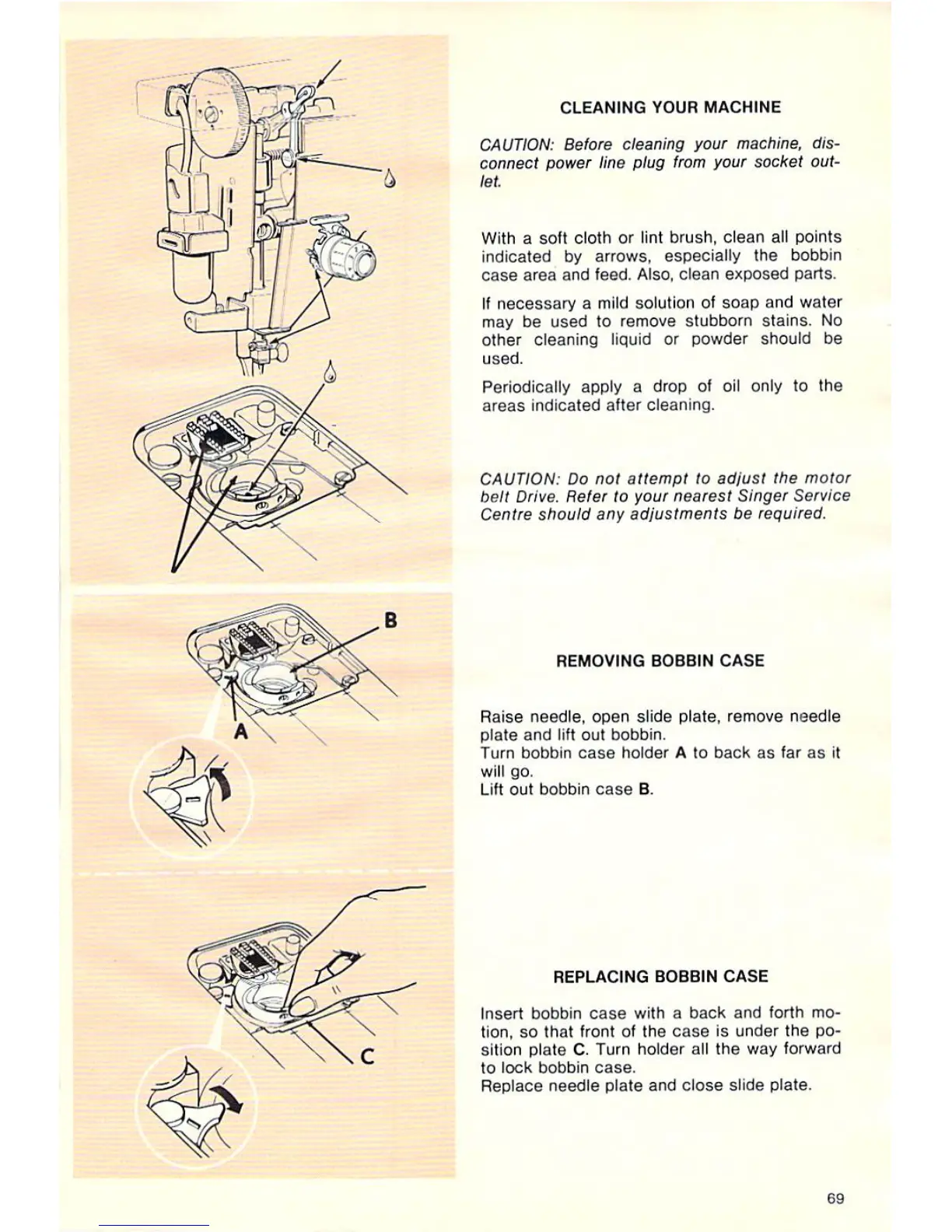 Singer Magic 8134; Magic 8234 - Cleaning Your Machine; Removing Bobbin Case; Replacing Bobbin Case